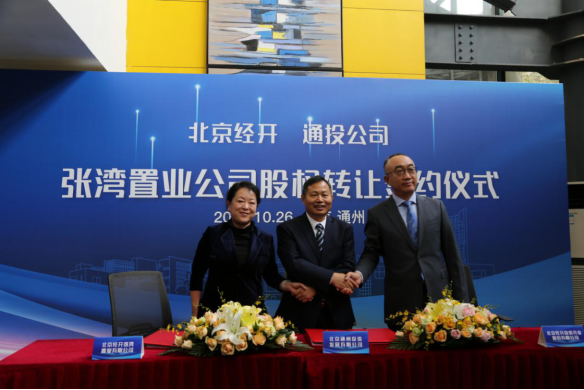 10月26日,通投公司與北京經(jīng)開(kāi)投資開(kāi)發(fā)股份有限公司就收購(gòu)北京經(jīng)開(kāi)張灣置業(yè)有限公司股權(quán)簽約儀式舉行。通州區(qū)副區(qū)長(zhǎng)樓俊峰,北投集團(tuán)黨委副書(shū)記、總經(jīng)理、通投公司董事長(zhǎng)陳衛(wèi)東,北京亦莊投資控股有限公司總經(jīng)理?xiàng)钗牧嫉阮I(lǐng)導(dǎo)出席。