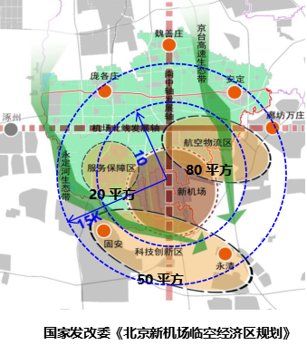 2016年8月,國(guó)家發(fā)改委編制的《北京新機(jī)場(chǎng)臨空經(jīng)濟(jì)區(qū)規(guī)劃(2016-2020年)》正式獲得批復(fù)。北京新機(jī)場(chǎng)臨空經(jīng)濟(jì)區(qū)總面積約150平方公里,其中北京部分約50 km2,位于大興區(qū)禮賢與榆垡兩鎮(zhèn)。新機(jī)場(chǎng)臨空經(jīng)濟(jì)區(qū)以京津冀協(xié)同發(fā)展戰(zhàn)略為統(tǒng)領(lǐng),以北京新機(jī)場(chǎng)建設(shè)為機(jī)遇,遵循臨空經(jīng)濟(jì)發(fā)展規(guī)律,按照“國(guó)際交往中心功能承載區(qū)、國(guó)家航空科技創(chuàng)新引領(lǐng)區(qū)、京津冀協(xié)同發(fā)展示范區(qū)”的戰(zhàn)略要位,依托北京新機(jī)場(chǎng)建設(shè)這個(gè)國(guó)家發(fā)展新的動(dòng)力源和“五縱兩橫”發(fā)達(dá)的交通網(wǎng)絡(luò),著眼于首都發(fā)展全局,正在努力打造成為首都國(guó)際交往新的門戶。