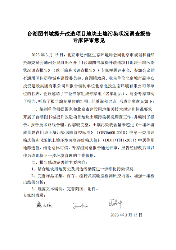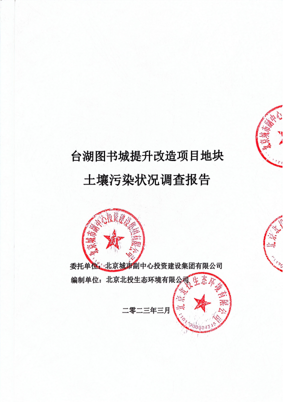 北京城市副中心投資建設集團有限公司根據《中華人民共和國土壤污染防治法》、《污染地塊土壤環(huán)境管理辦法(試行)》(部令第42號)等相關法律法規(guī)要求,委托北京北投生態(tài)環(huán)境有限公司在充分搜集場地歷史及場地環(huán)境相關資料的基礎上,通過現場踏勘、社會調查、勘察、采樣、檢測及相關分析等工作,編制完成了《臺湖圖書城提升改造項目地塊土壤污染狀況調查報告》。